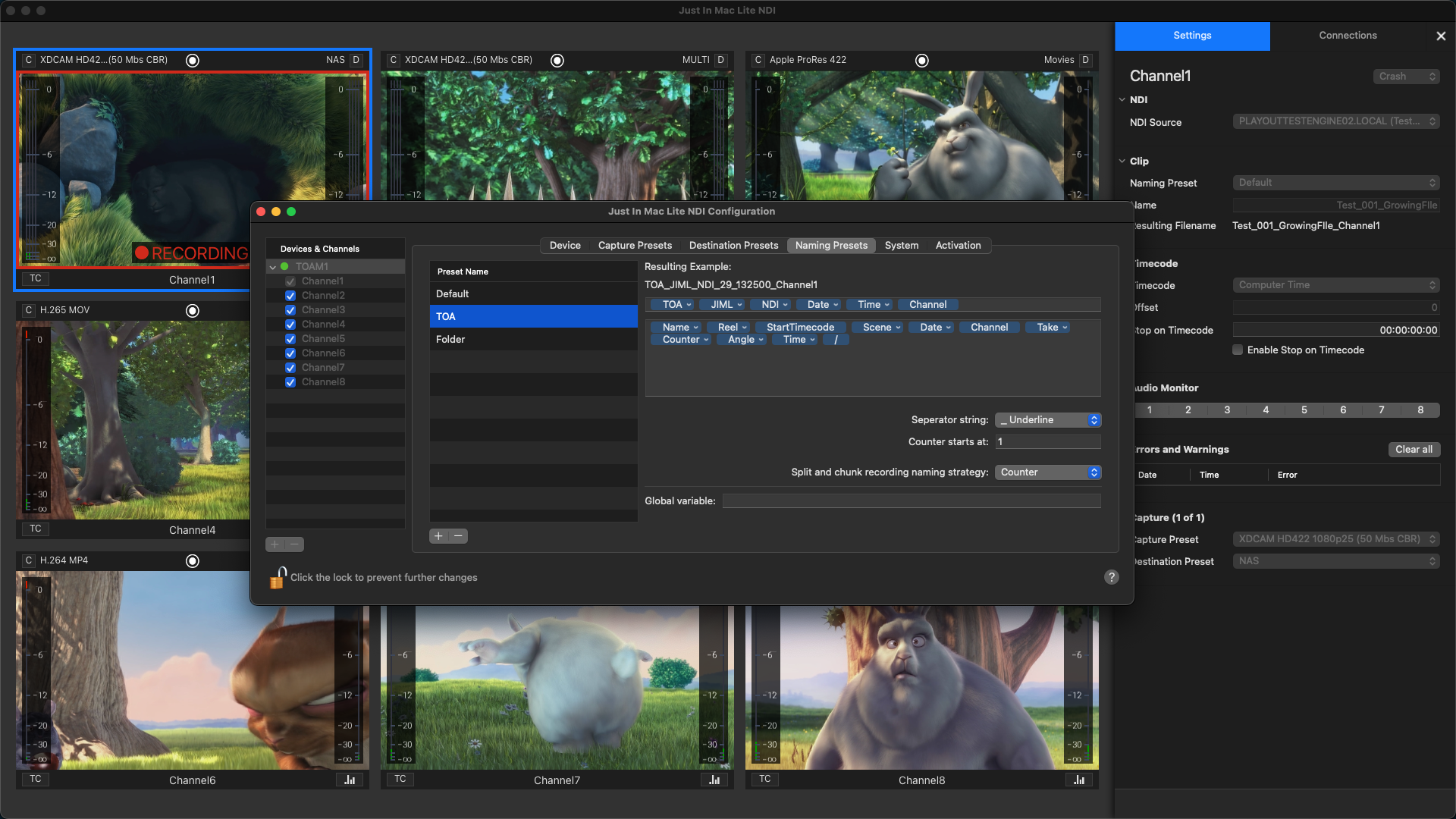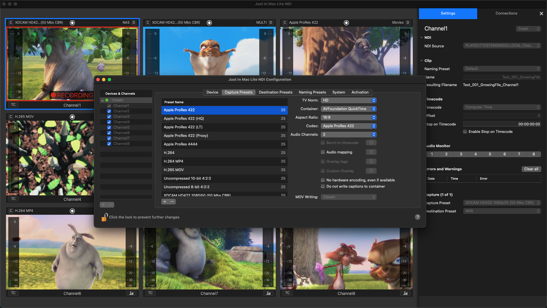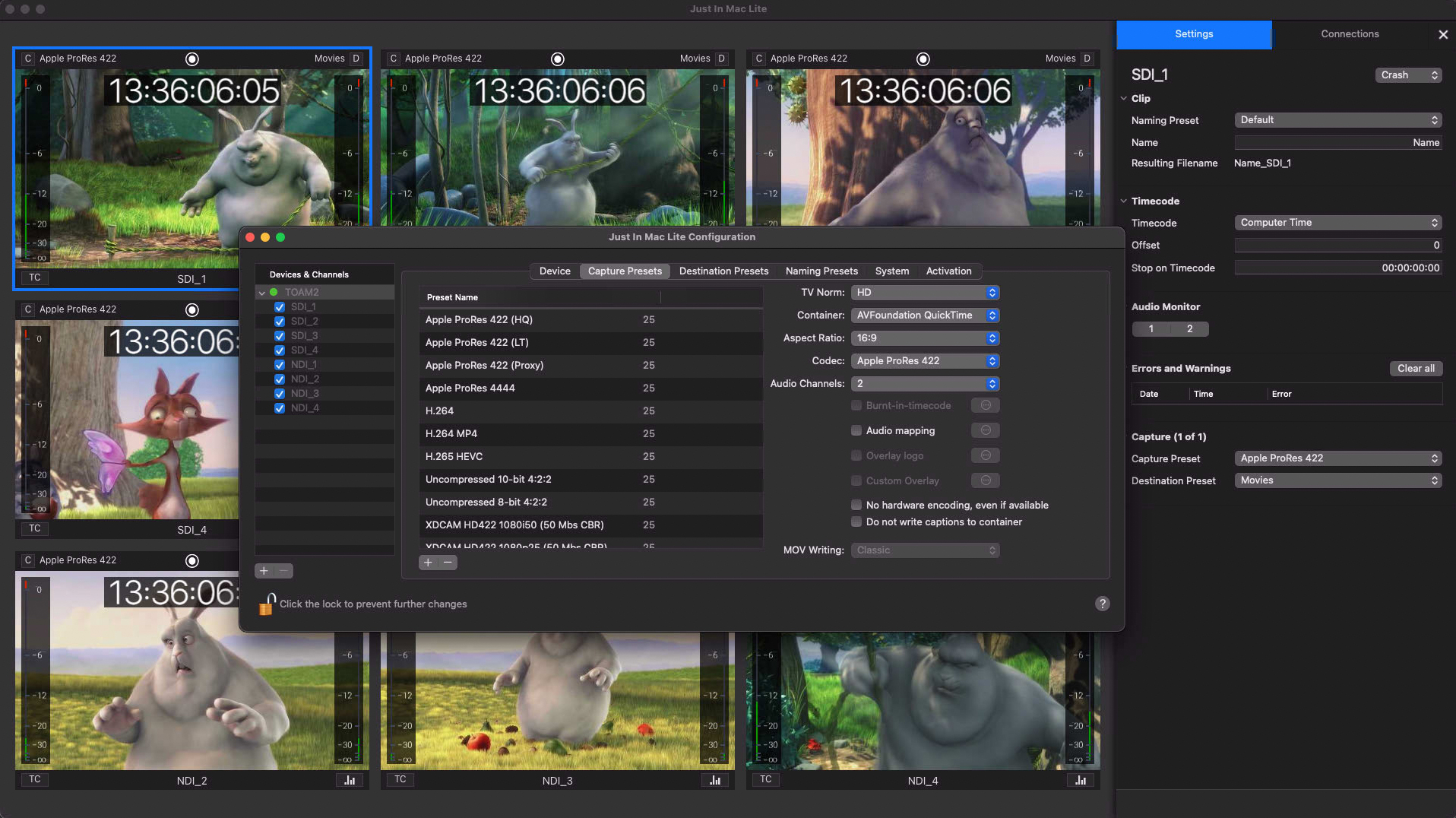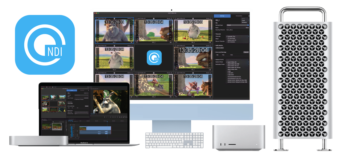 The Just In Mac Lite NDI 2025 application is a streamlined NDI® version of the versatile just:in mac pro 2025 client-server capture solution for the macOS platform. It shares the same flexible and reliable capture engine of just:in mac pro 2025 and covers the indispensable recording functions of broadcast and production environments that might not require the full feature set of our Pro edition or are in demand for a budget-friendly capture solution.