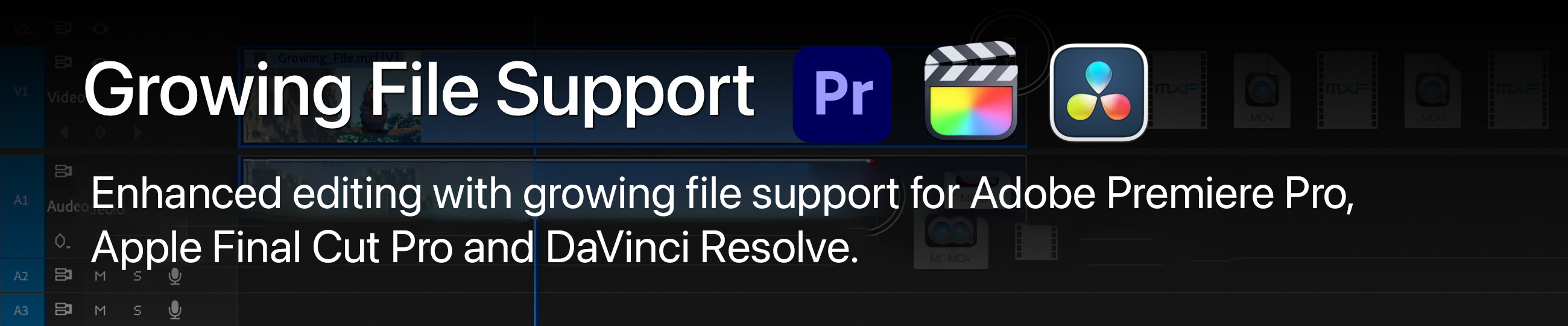 Growing File Support | (Refer to NLE Vendor codec/container compatibility) |