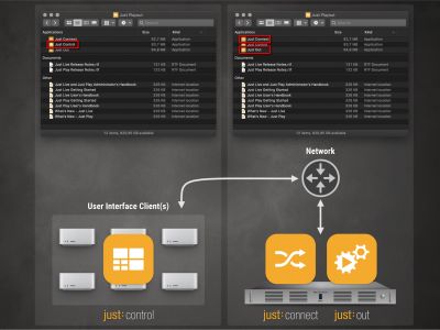 All core components—Just Out, Just Connect, and Just Control—can be installed on one machine, or distributed across multiple Macs to meet your exact needs.