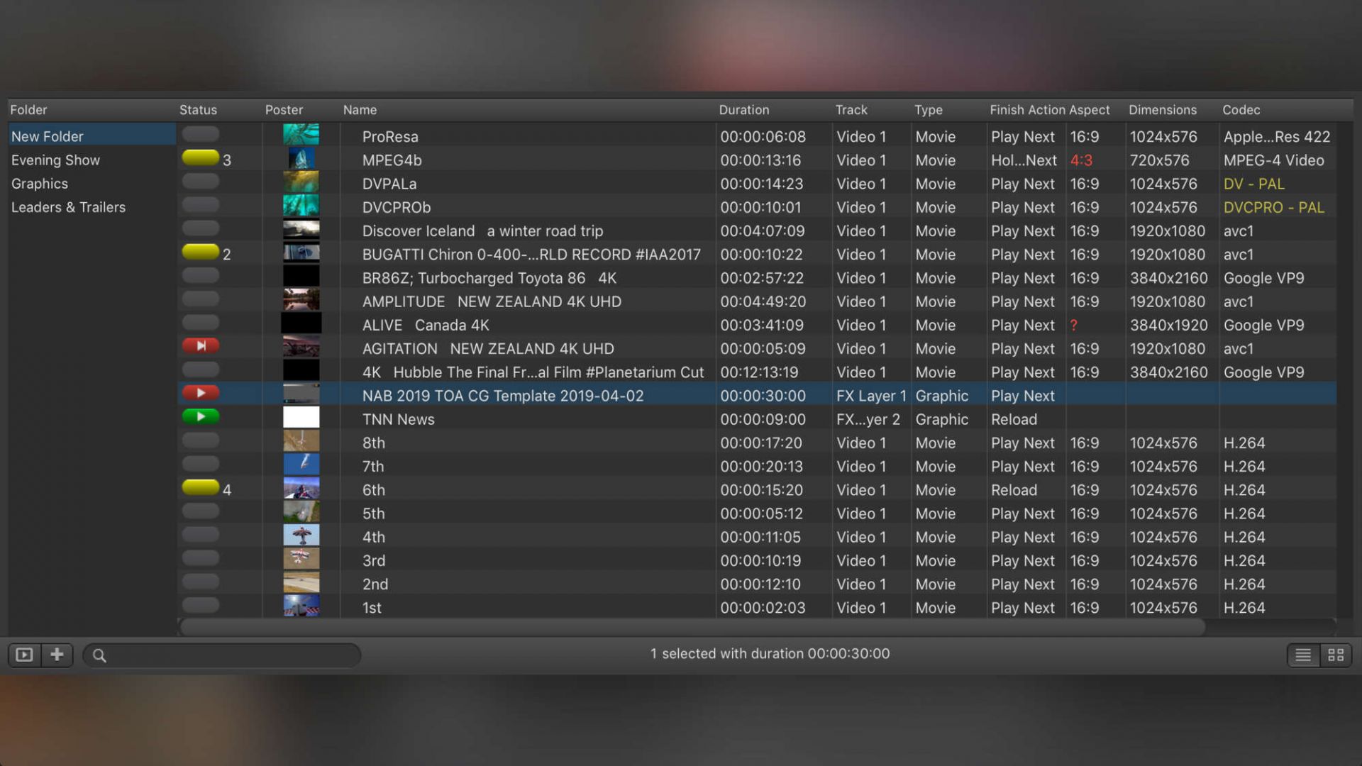 - Advanced Finished Actions for each clip, including Play Next, Cue Next, Reload, Hold, Recue and Loop.
