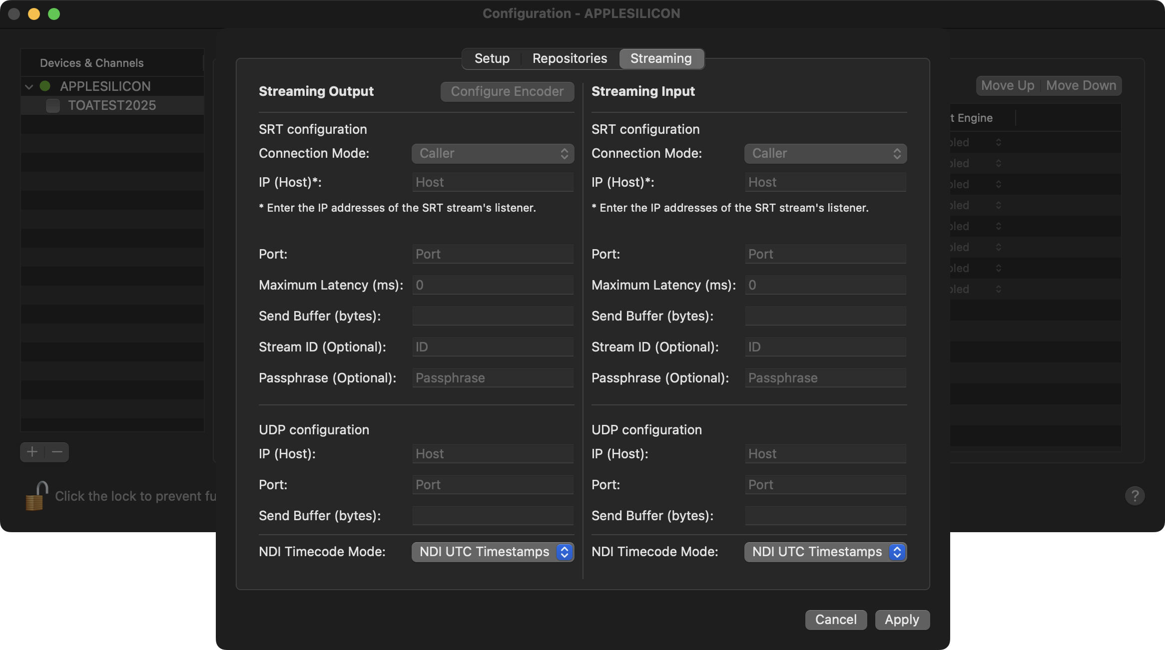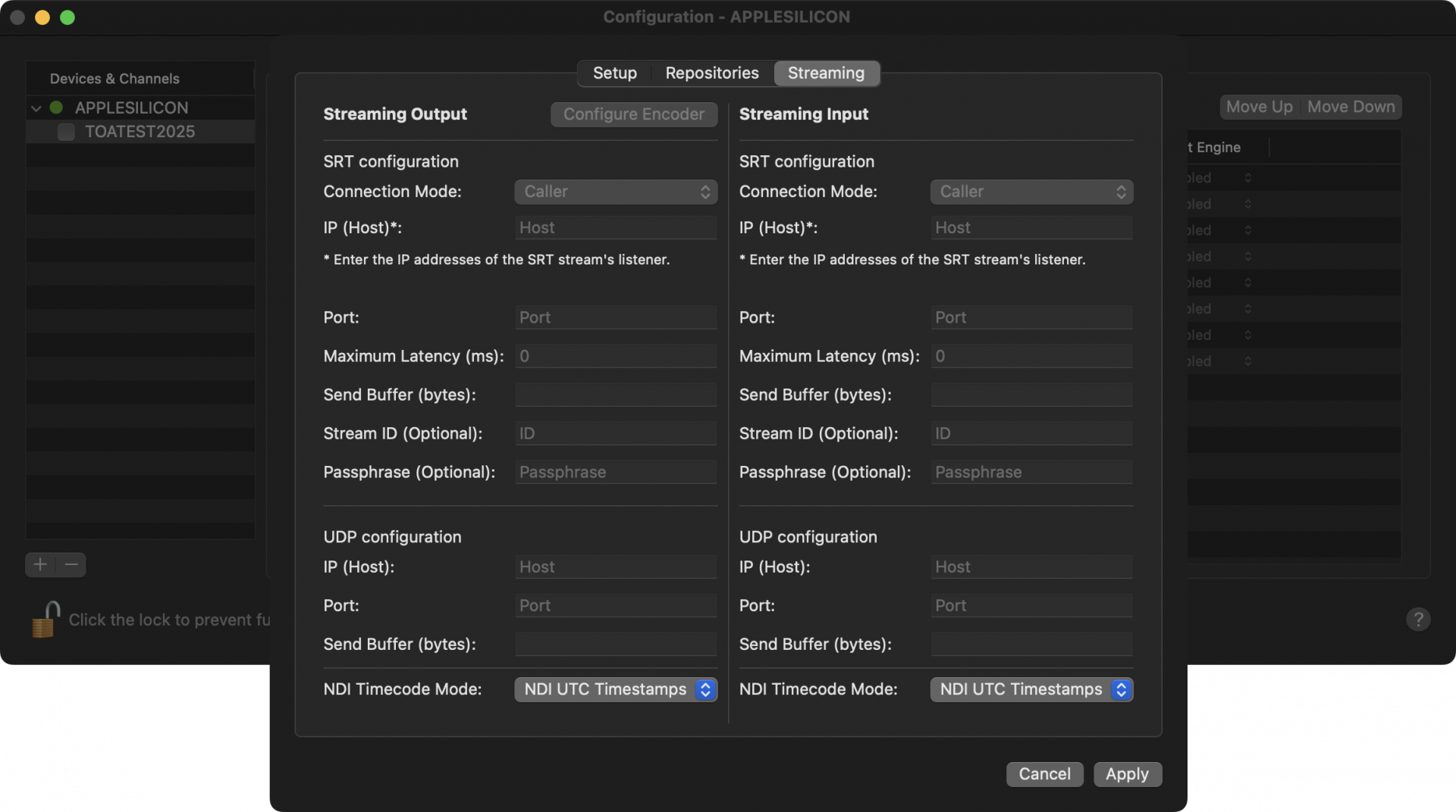 - Supported Inputs: SDI, NDI®, SRT, UDP, ST-2110. RTMP, RTSP, HLS, MPEG-DASH to follow in upcoming releases.