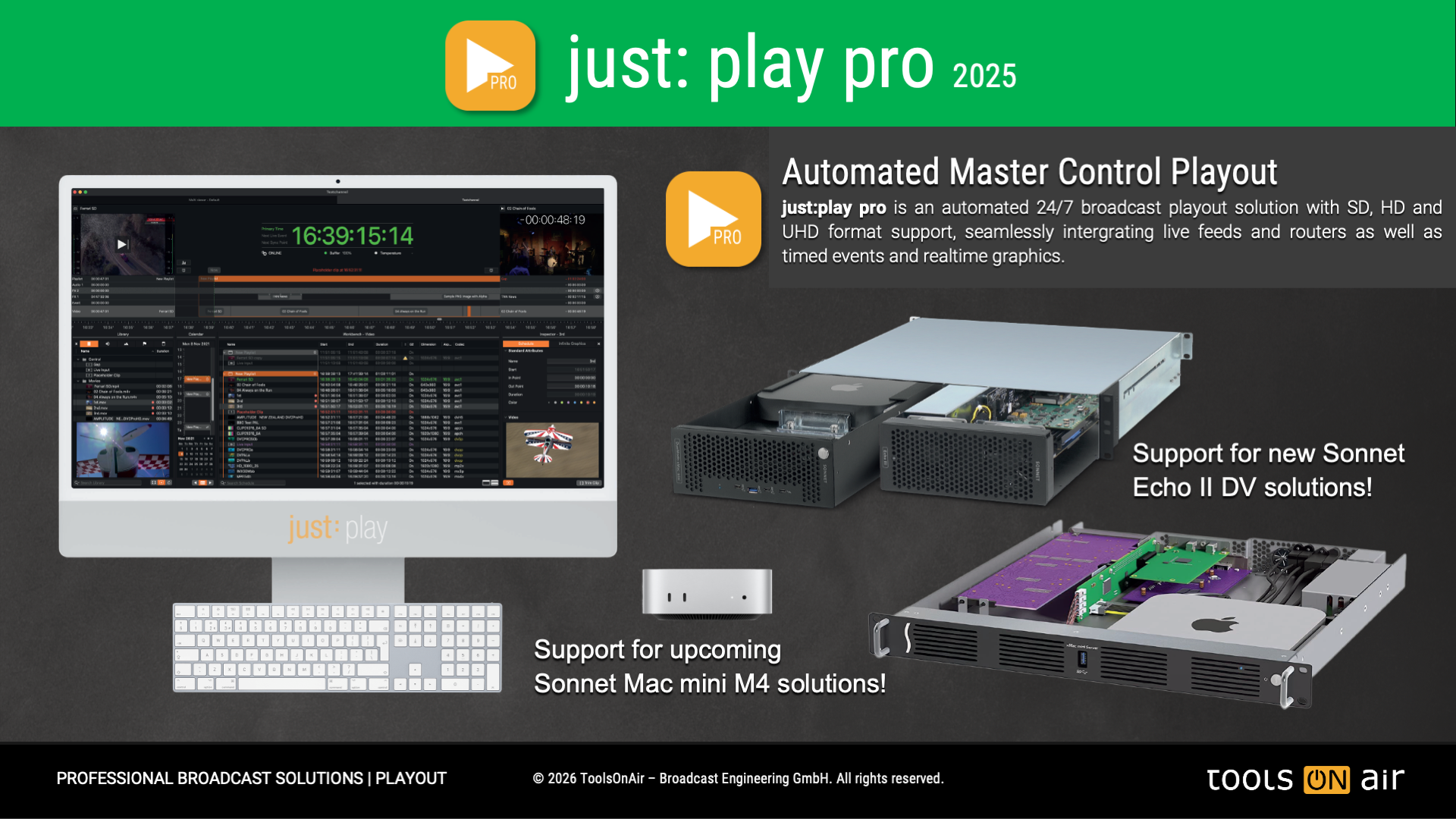 ToolsOnAir has released version 2025.4 of the Pro Playout edition. Please click on the image to view more detailed information about the new features in this latest release.