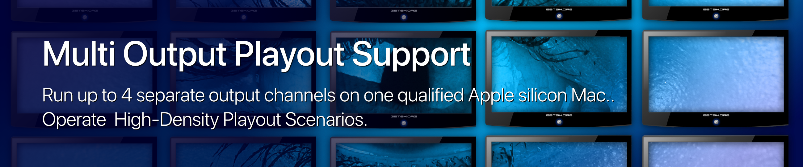 UHD playout is supported using Apple silicon-based Mac mini (M1/M2/M4), Mac Studio (Max or Ultra) or Mac Pro 2023 (Mac14,8), up to 60fps.
