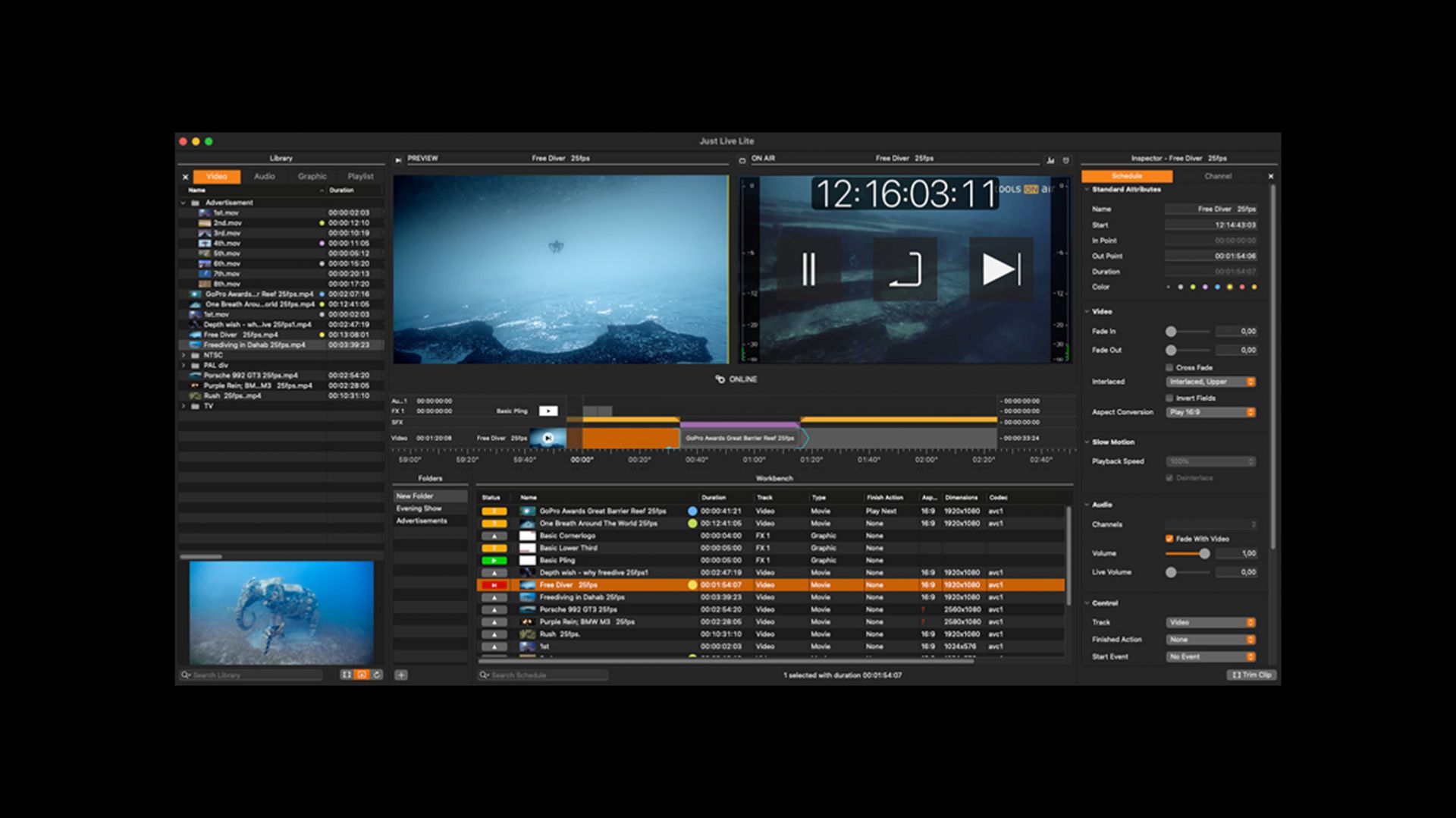 With Just Live Lite 2025 you can play out video content, audio files, Simple FX graphics, live signal pass-through, as well as both internal and HTML5-based real-time graphics—delivering comprehensive control in any live production environment.