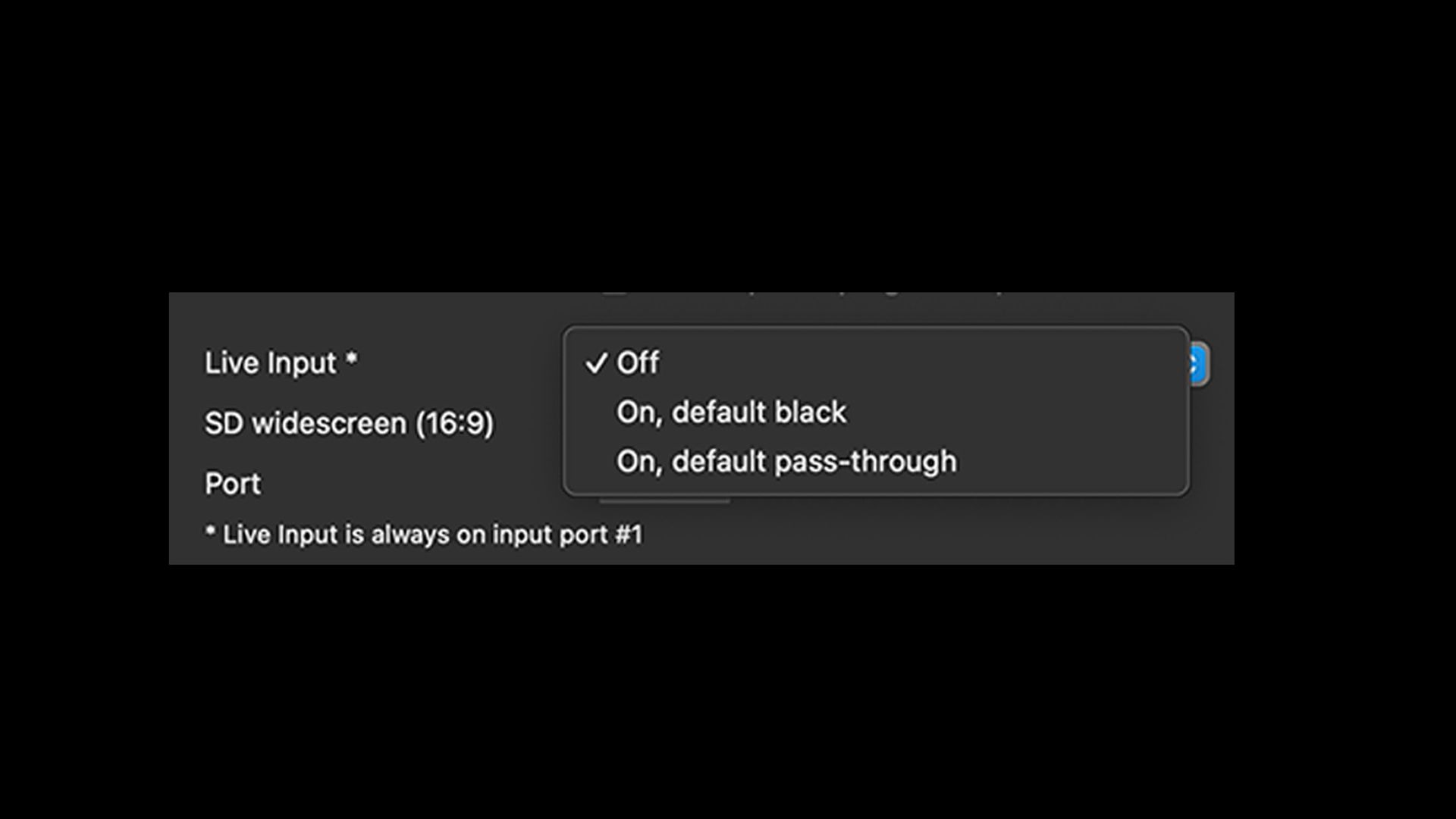 - Supported Live Input Method: Buffered Black or Pass-Through.