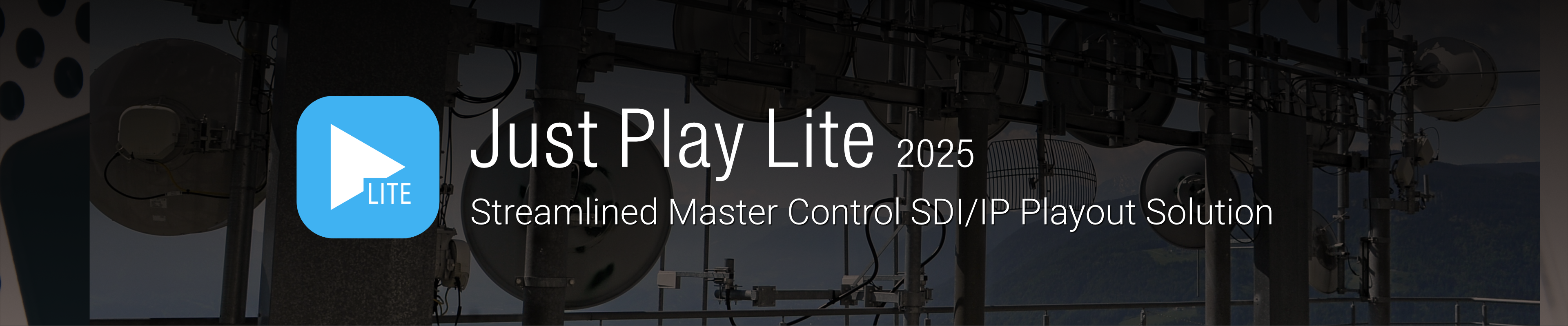 The Just Play Lite 2025 application is a streamlined edition of the versatile just:play pro 2025 client-server Master Control playout solution. It leverages the same flexible and reliable playout engine as just:play pro 2025, delivering essential Master Control playout functionality for broadcast and production environments that may not require the full feature set of our Pro playout solutions or are in demand for a cost-effective alternative.