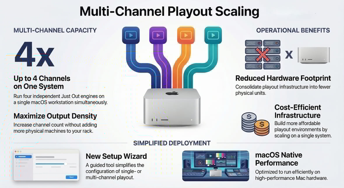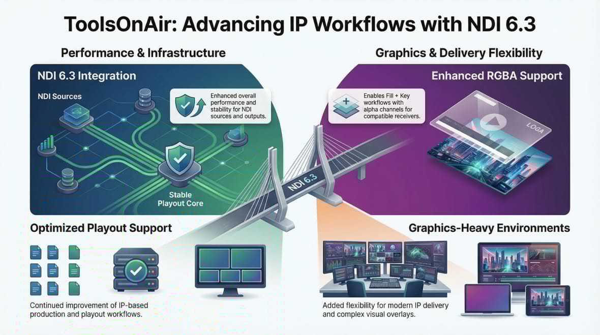 At NAB 2026, ToolsOnAir will showcase just:play pro 2026 and just:live pro 2026, the latest generations of its macOS-based playout solutions. This new release offers significant enhancements for broadcasters and live production teams, including multi-channel playout on a single system, improved NDI® performance, advanced caption and VANC monitoring, new multi-viewer elements, and more flexible live-switching workflows.