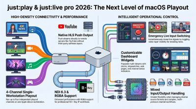 Our acclaimed client–server broadcast solutions for macOS are now available as updated Pro editions, reinforcing our commitment to delivering cutting-edge tools for the professional broadcast market. The just:in mac pro 2026, just:live pro 2026, and just:play pro 2026 solutions are engineered for uncompromising reliability and advanced workflow integration—purpose-built to meet the rigorous demands of broadcasters worldwide.