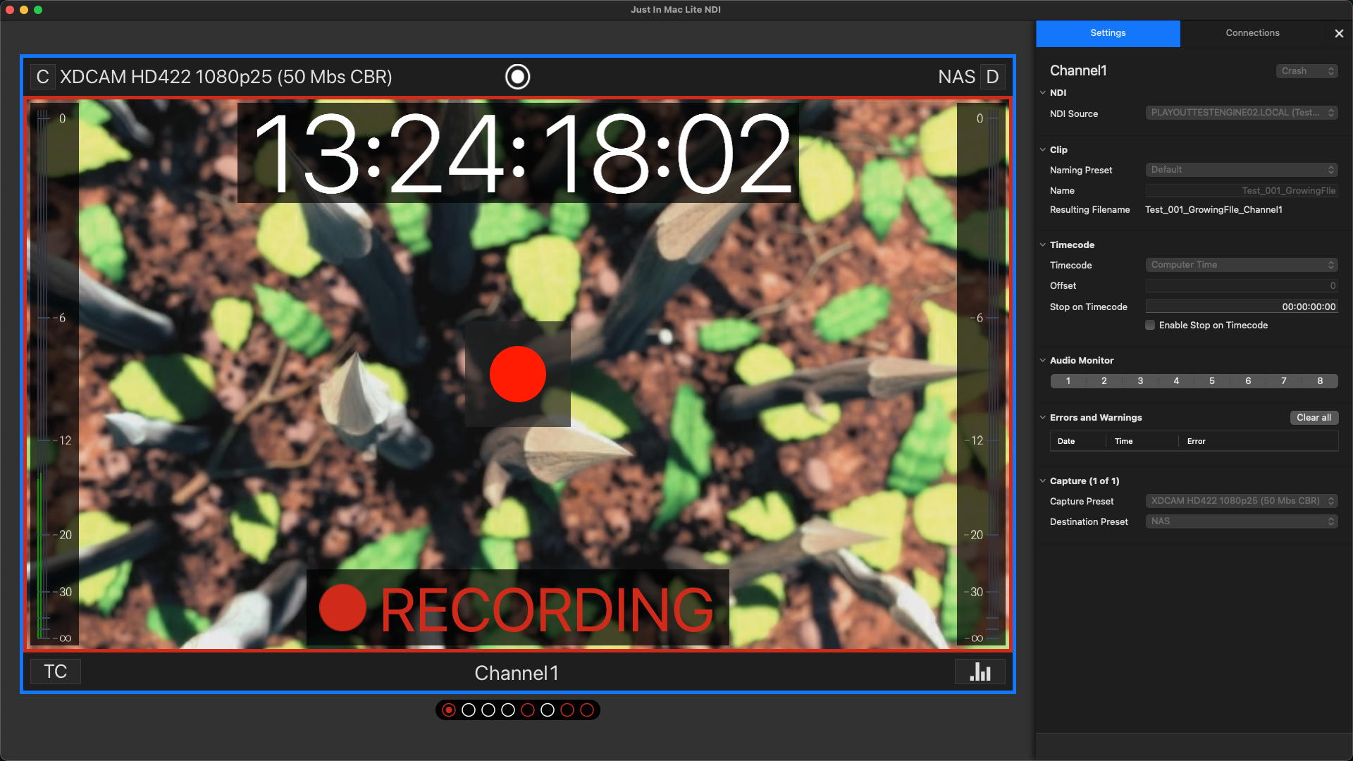 The trial version of the Just In Mac Lite NDI application is fully feature enabled, but will apply a watermark to the recording(s) at a given interval.