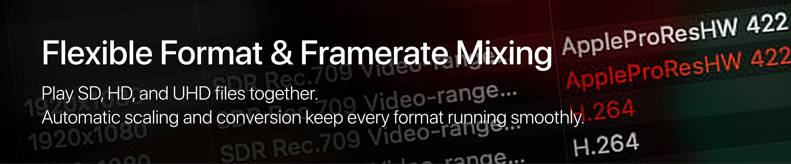 UHD playout is supported using Apple silicon-based Mac mini (M1/M2/M4), Mac Studio (Max or Ultra) or Mac Pro 2023 (Mac14,8), up to 60fps.