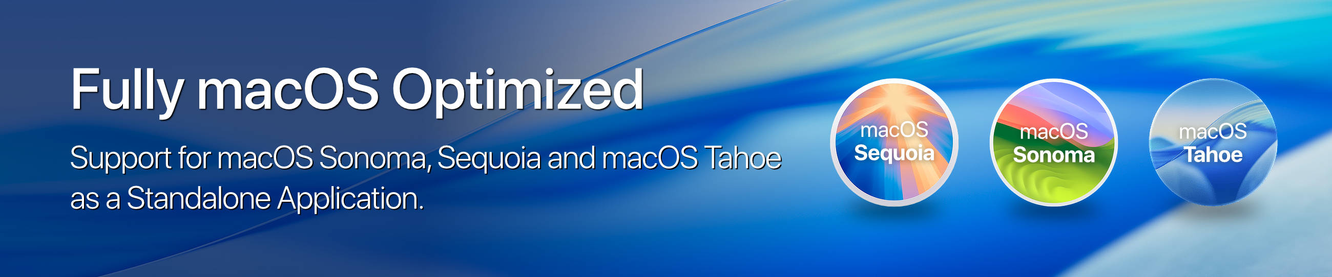 - Supported Operating Systems: latest versions of macOS Sonoma, macOS Sequoia, macOS Tahoe.