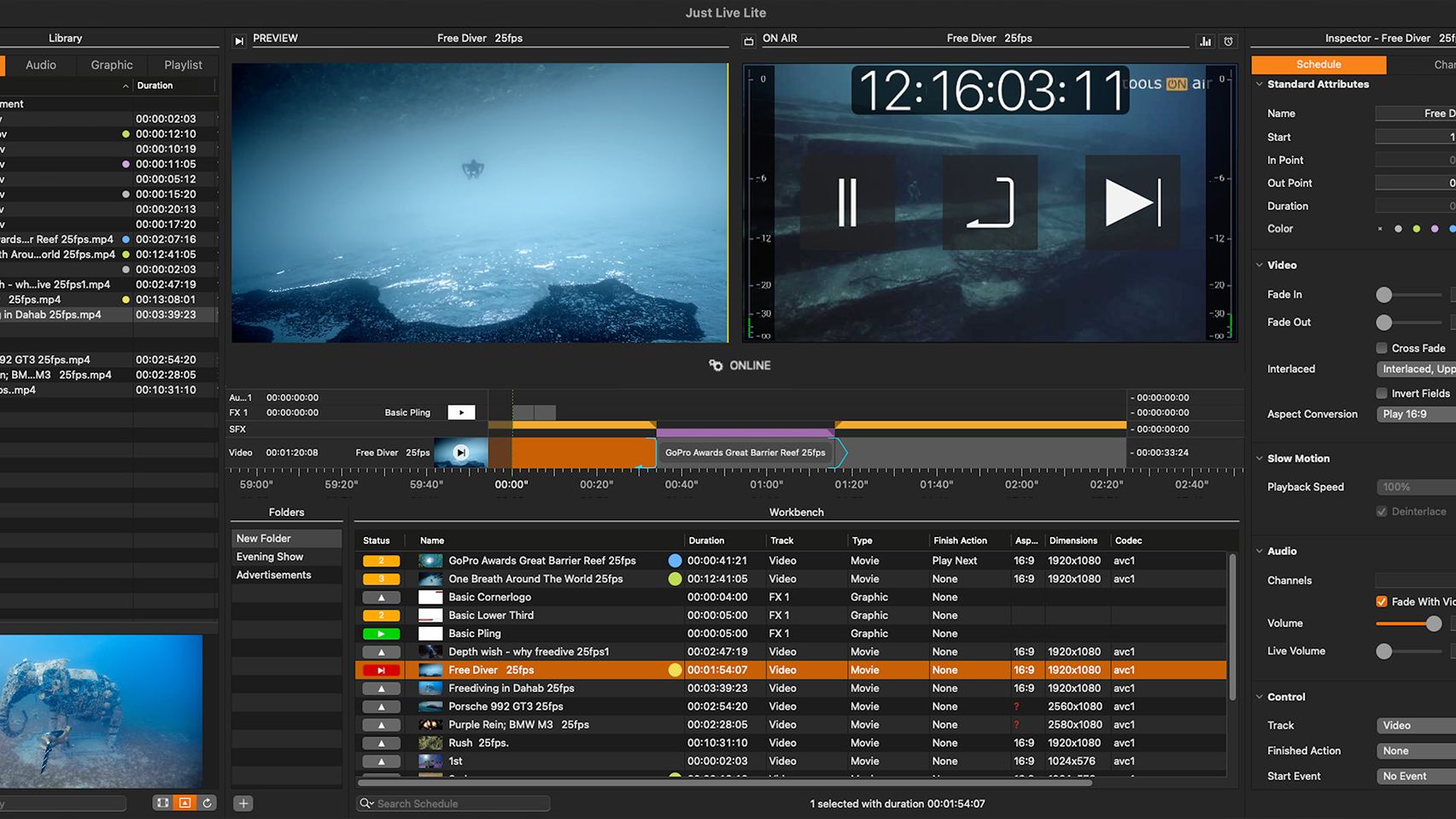 With Just Live Lite 2025 you can play out video content, audio files, Simple FX graphics, live signal pass-through, as well as both internal and HTML5-based real-time graphics—delivering comprehensive control in any live production environment.