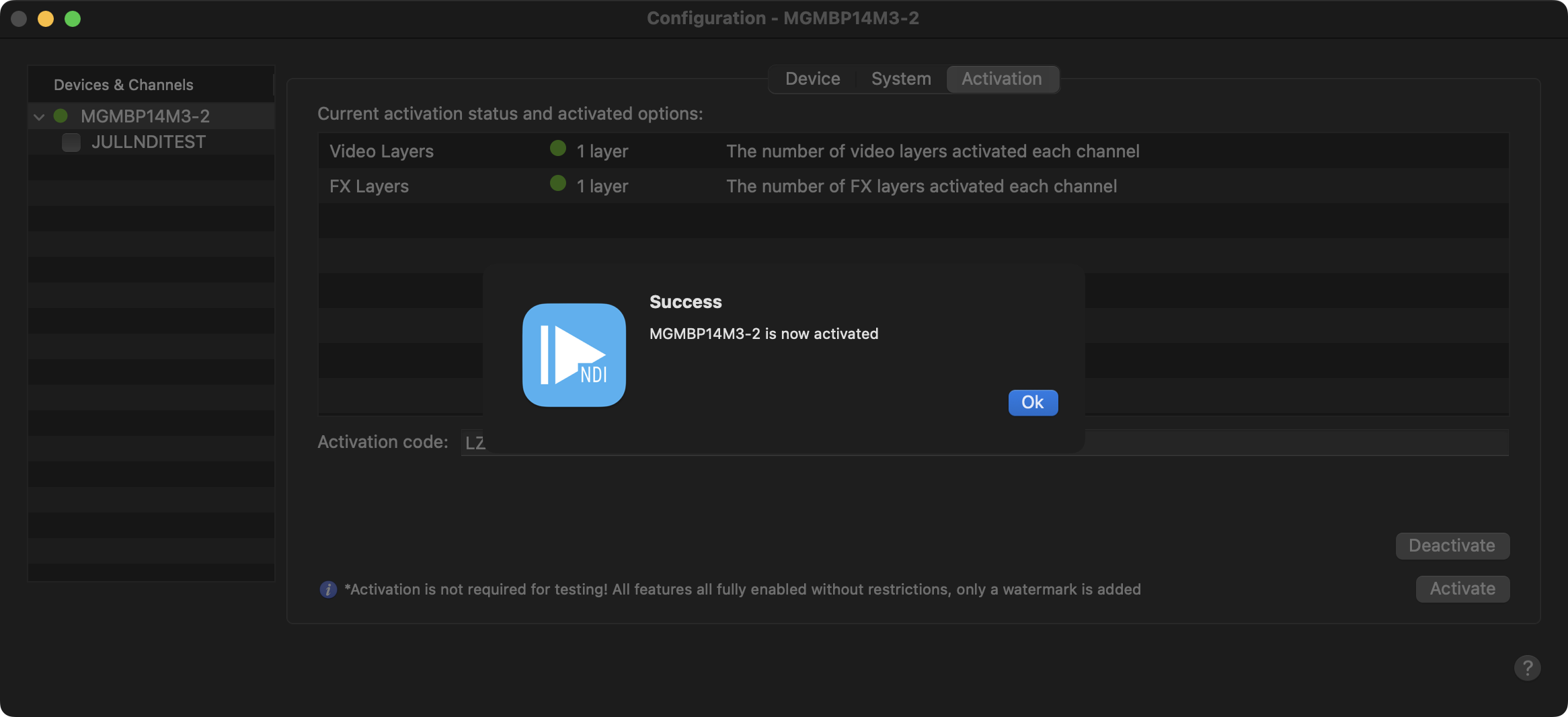The Just Live Lite NDI application comes fully featured in Demo Mode but does not activate automatically, resulting in a ToolsOnAir watermark to be applied on all NDI® playout streams. Upon purchasing a license, you will receive an activation code to remove the watermark.